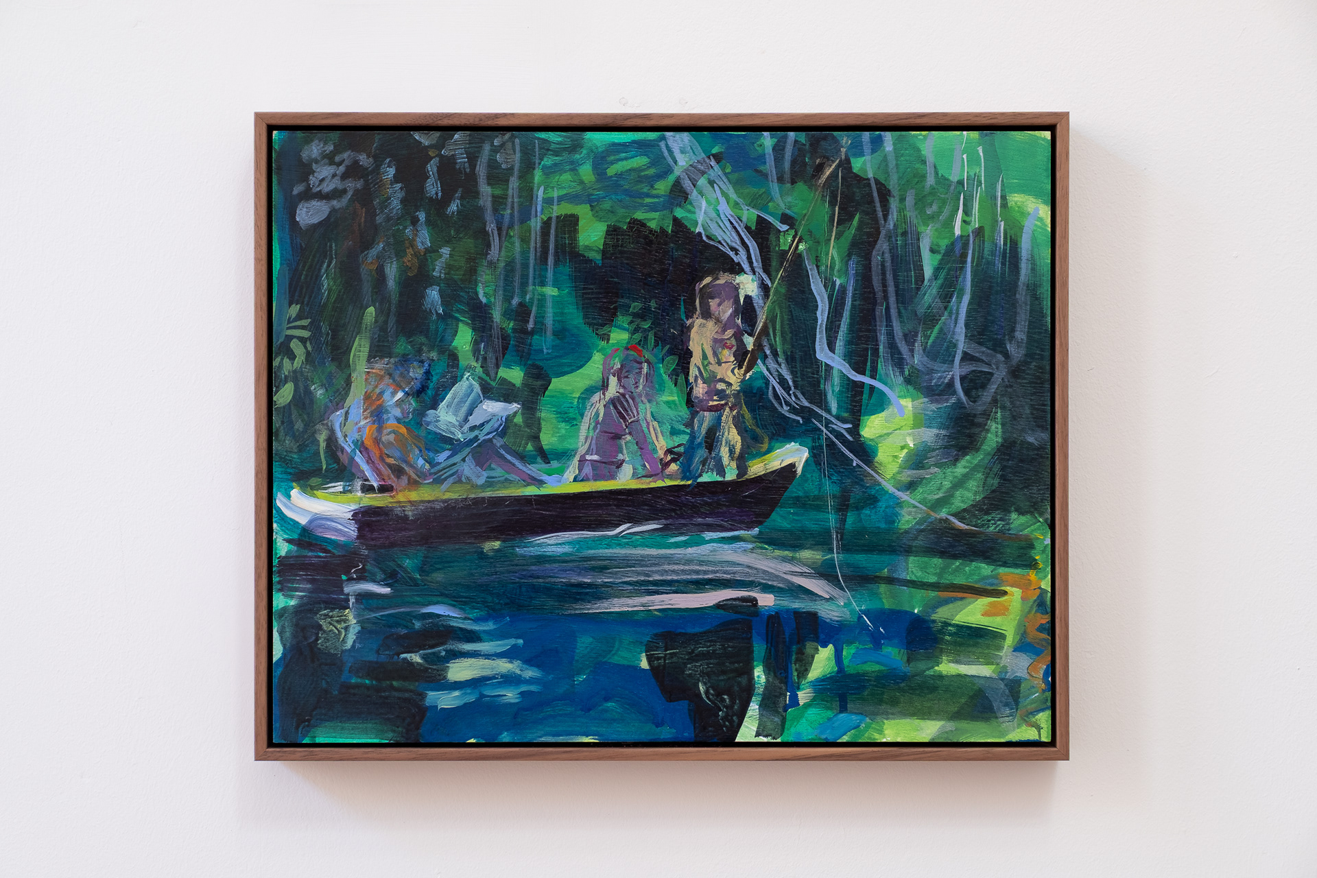 Leisure/ Pleasure – Girls River Fishing, (2025), 28 x 35.5cm, acrylic on panel